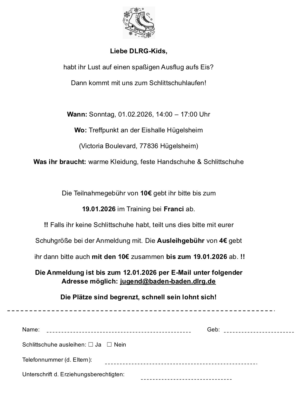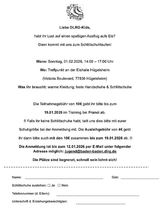 !! Falls ihr keine Schlittschuhe habt, teilt uns dies bitte mit eurer